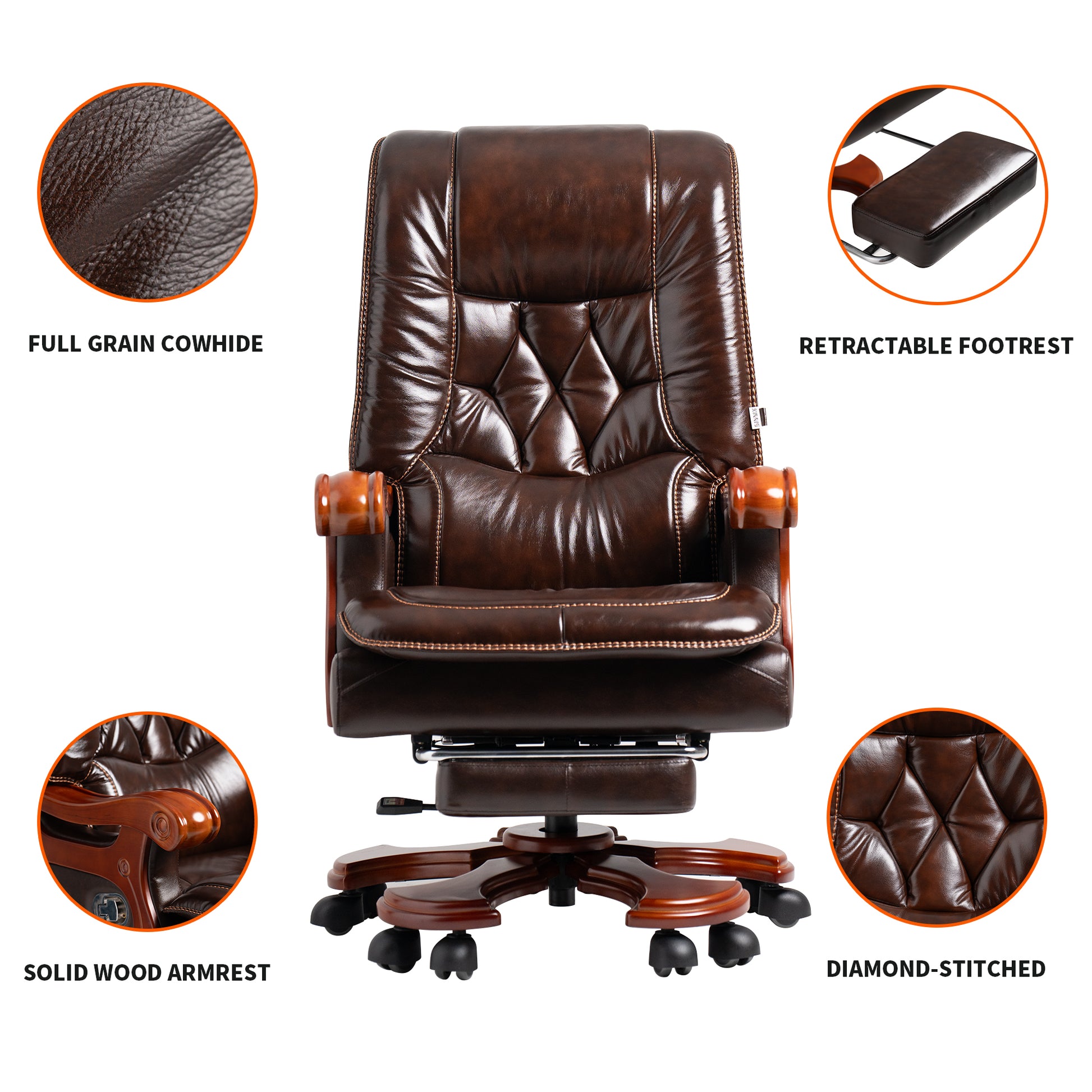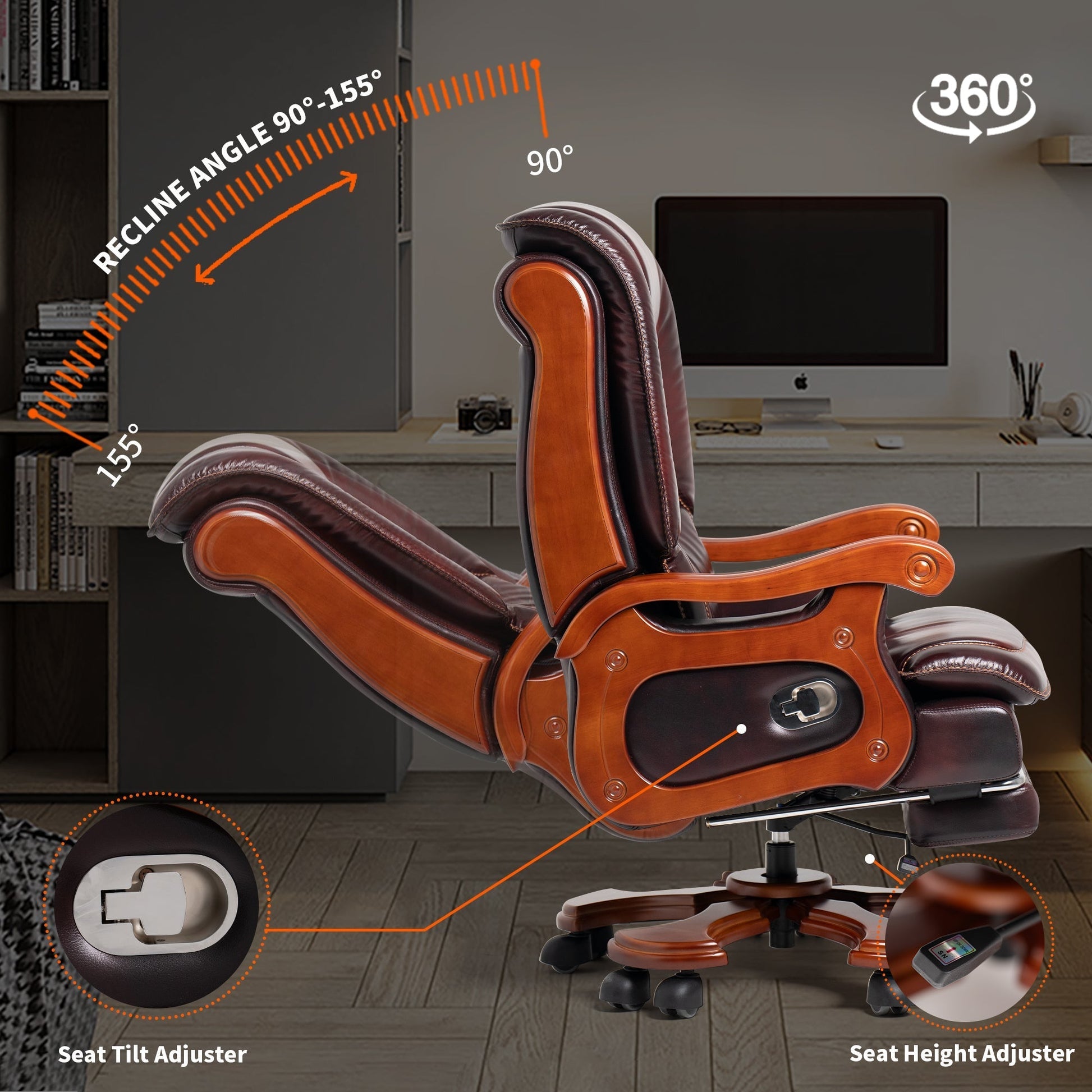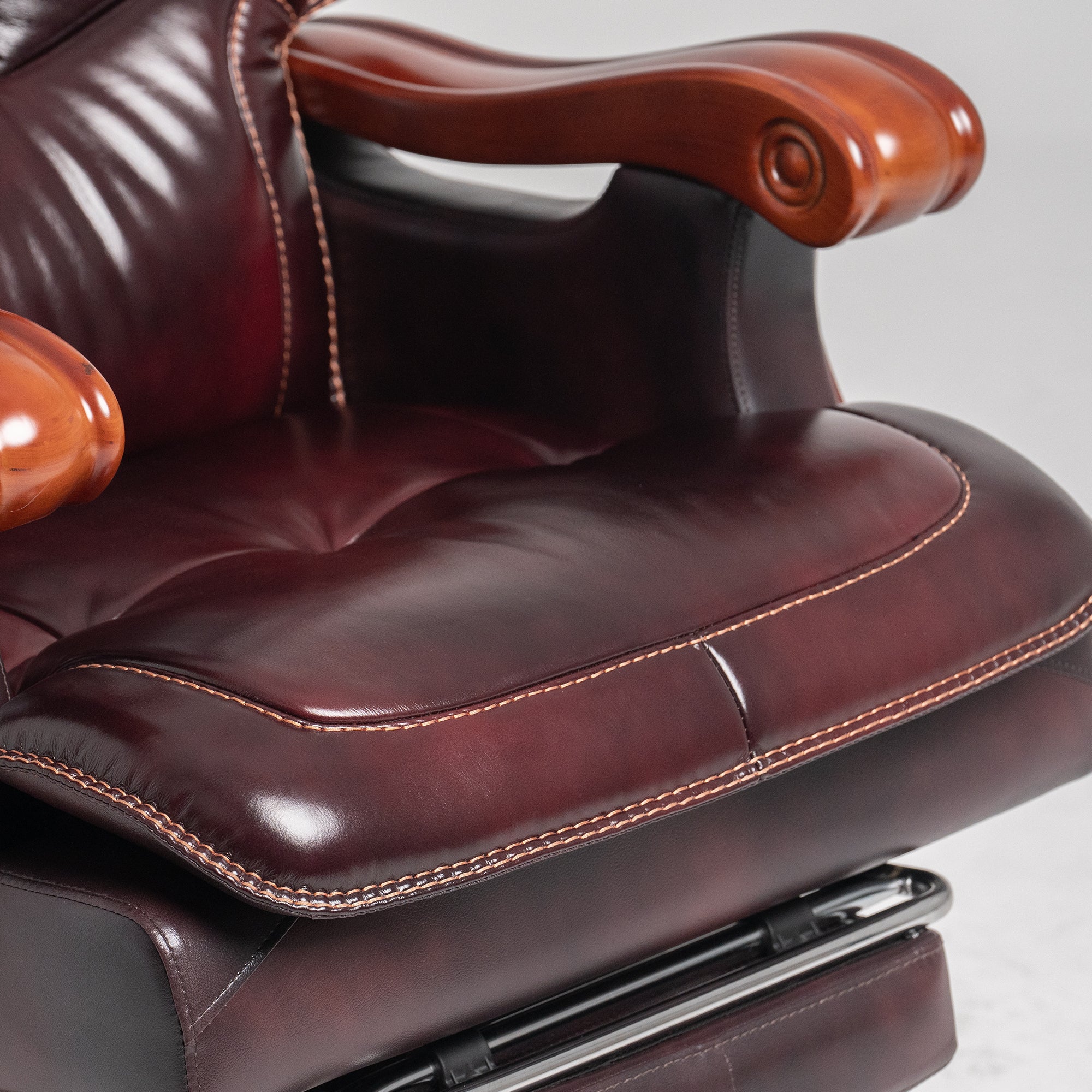 Braccioli: rispetto ai braccioli in plastica di tutte le altre sedie da ufficio direzionali, i nostri eleganti braccioli in legno massello sono più resistenti e non presentano problemi di sicurezza e rumore.