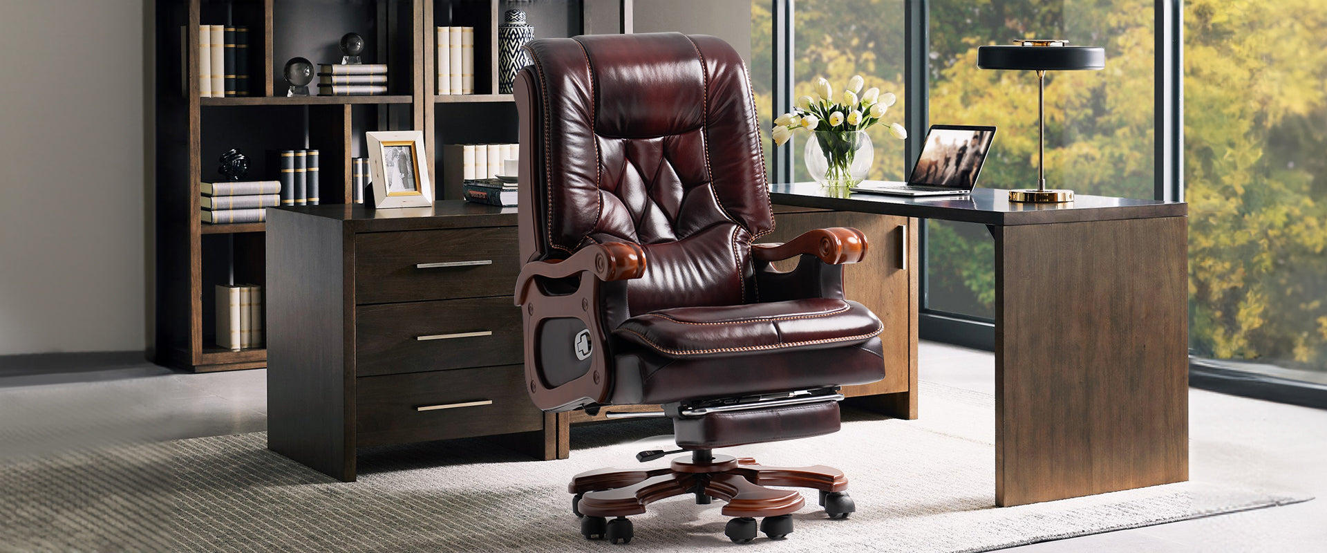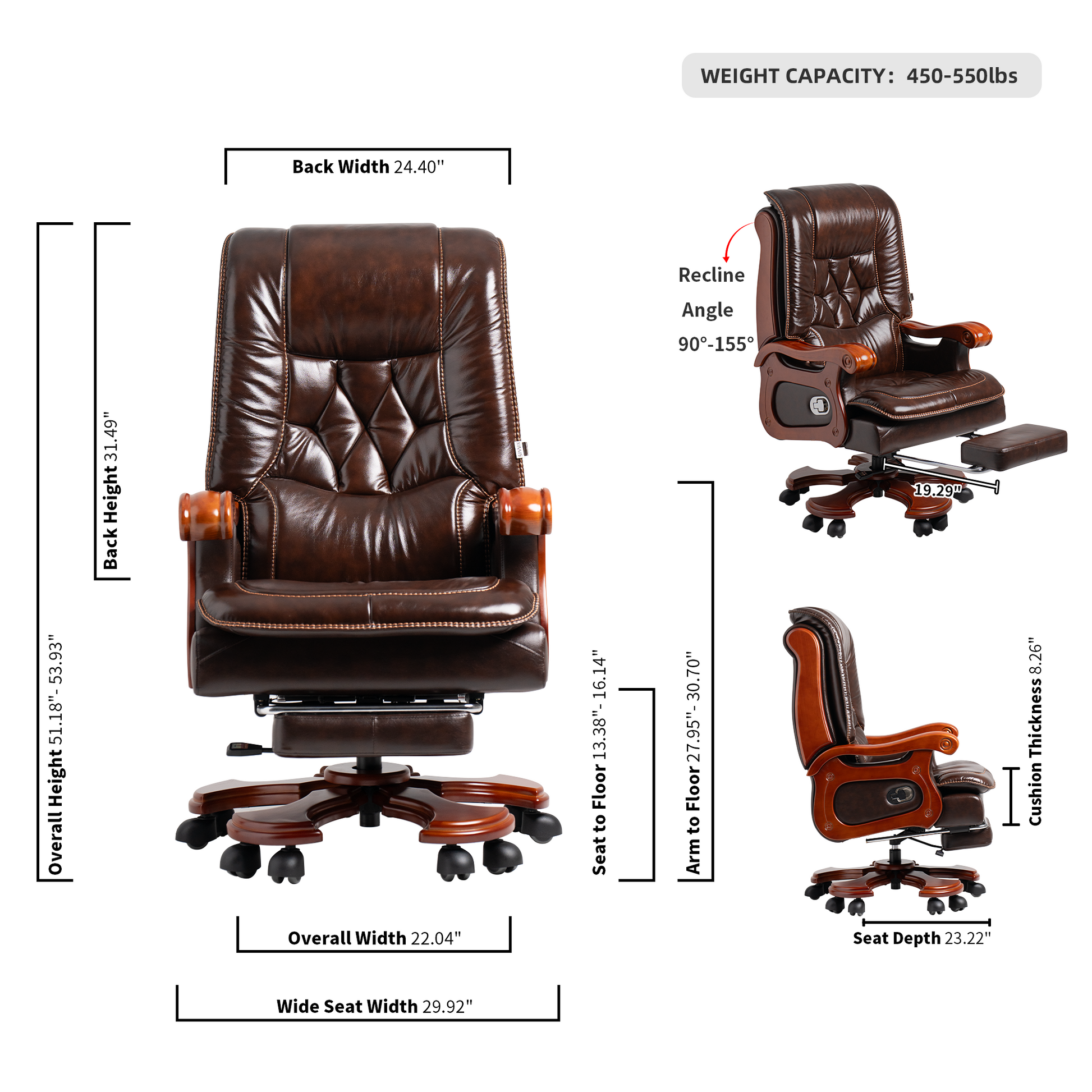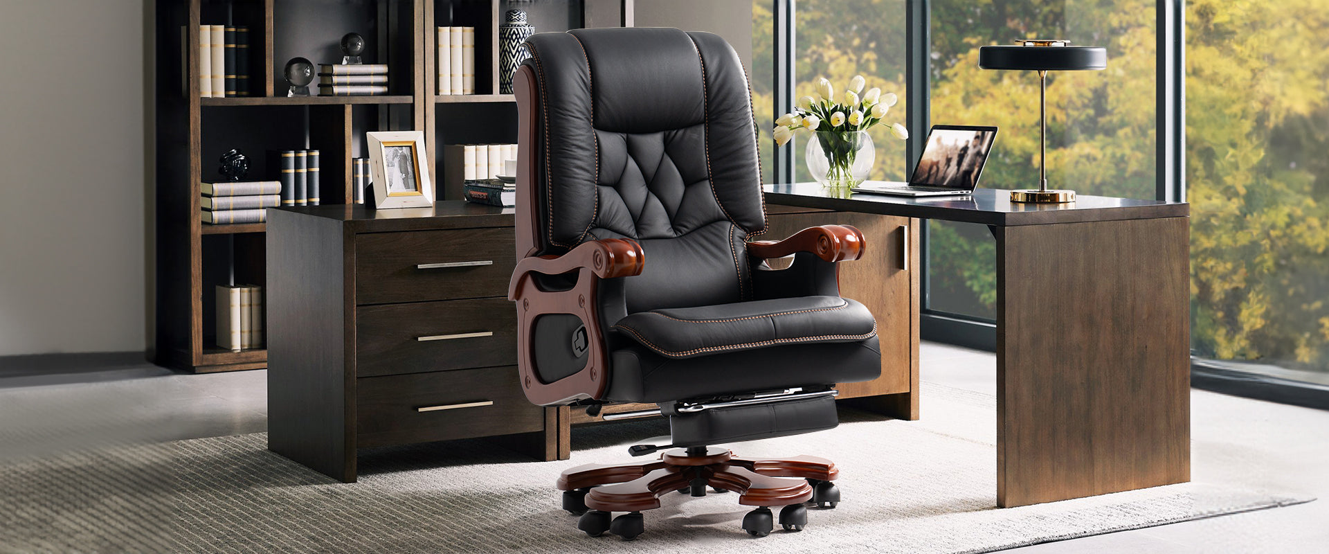 Braccioli: rispetto ai braccioli in plastica di tutte le altre sedie da ufficio direzionali, i nostri eleganti braccioli in legno massello sono più resistenti e non presentano problemi di sicurezza e rumore.